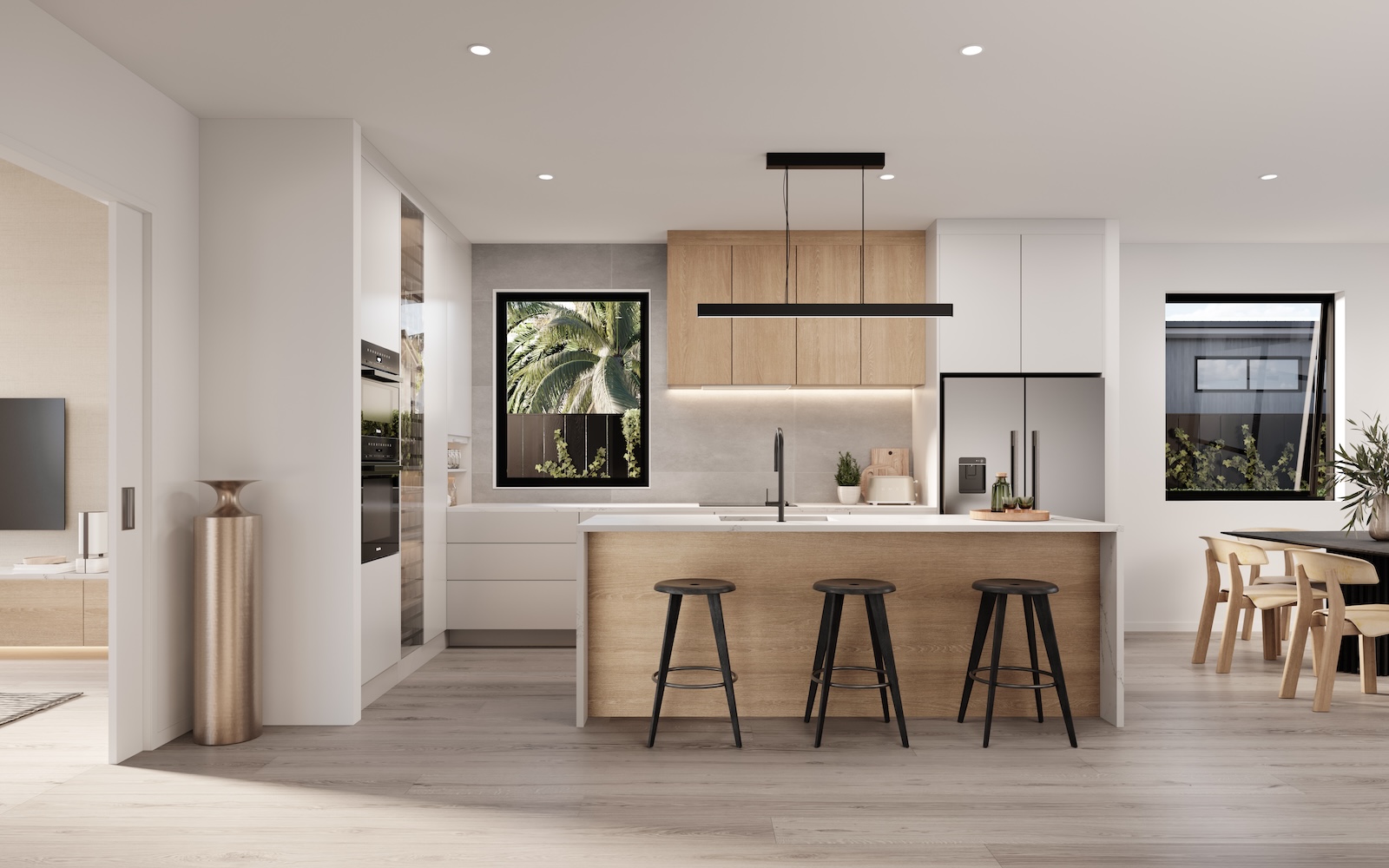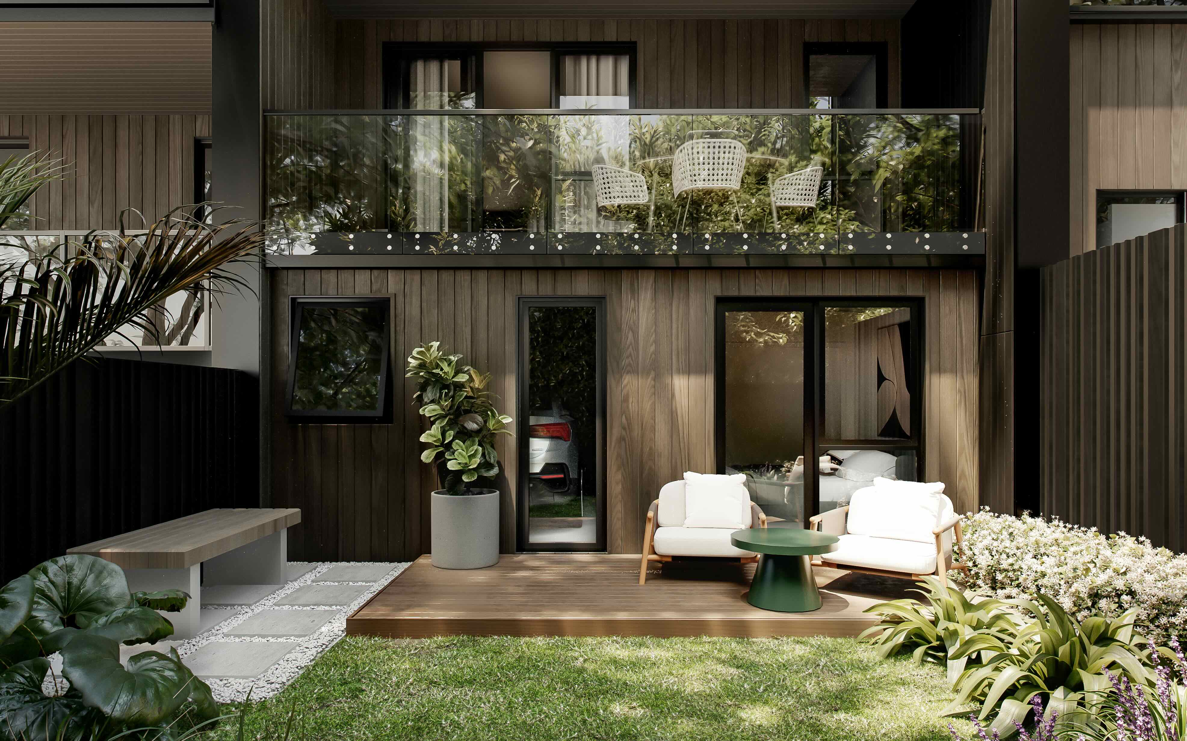 The design emphasises privacy, orientation, and efficient circulation, and also responds to the site’s steep topography by carefully orchestrating the placement and elevation of both dwellings and driveways to optimise access, stability, and spatial quality. This approach creates a cohesive streetscape and a high-quality living environment that balances urban convenience with residential comfort.